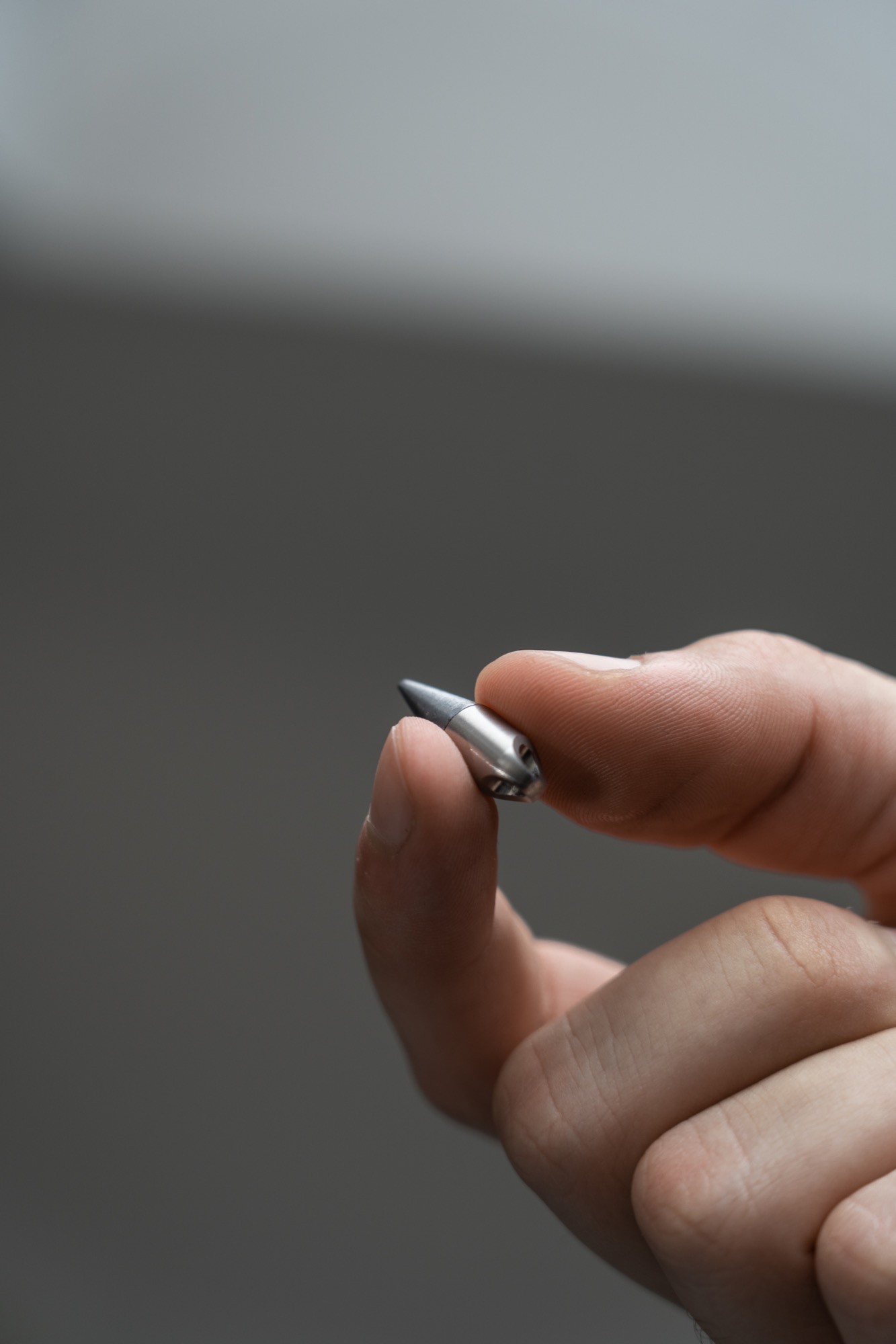 専門技師がシルバーチップの開発、製造に携わり機械で一つ一つ美しく削り出すことで重さやバランス、描きやすさを調整しています。