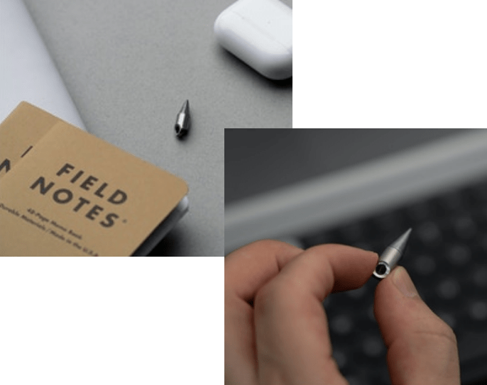特殊なシルバーチップが液体インクの代わりとなり、一切インクが必要なく半永久的に描けます。